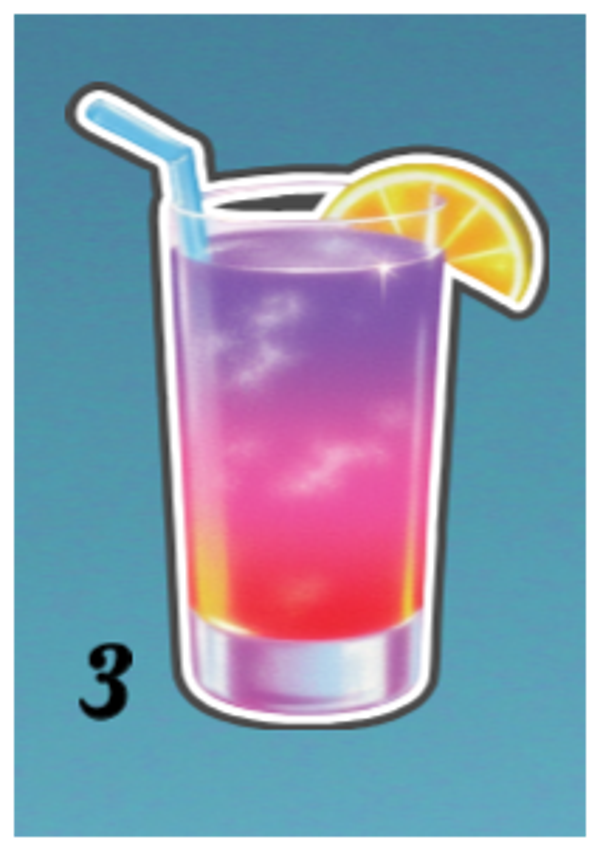 Complete Set contains three magnets, with a "TODAY'S FORECAST" design featuring a sunset/palm tree theme in blue, yellow, pink, red, and purple, inside a Large Cocktail glass.